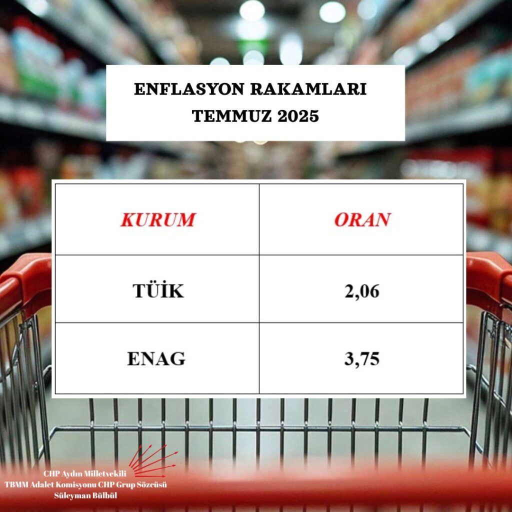 Cumhuriyet Halk Partisi (CHP) Aydın Milletvekili ve TBMM Adalet Komisyonu CHP Grup Sözcüsü Süleyman Bülbül, Türkiye İstatistik Kurumu’nun (TÜİK) Temmuz ayı enflasyon verilerini açıklamasının ardından kamuoyuna çarpıcı bir değerlendirme yaptı.