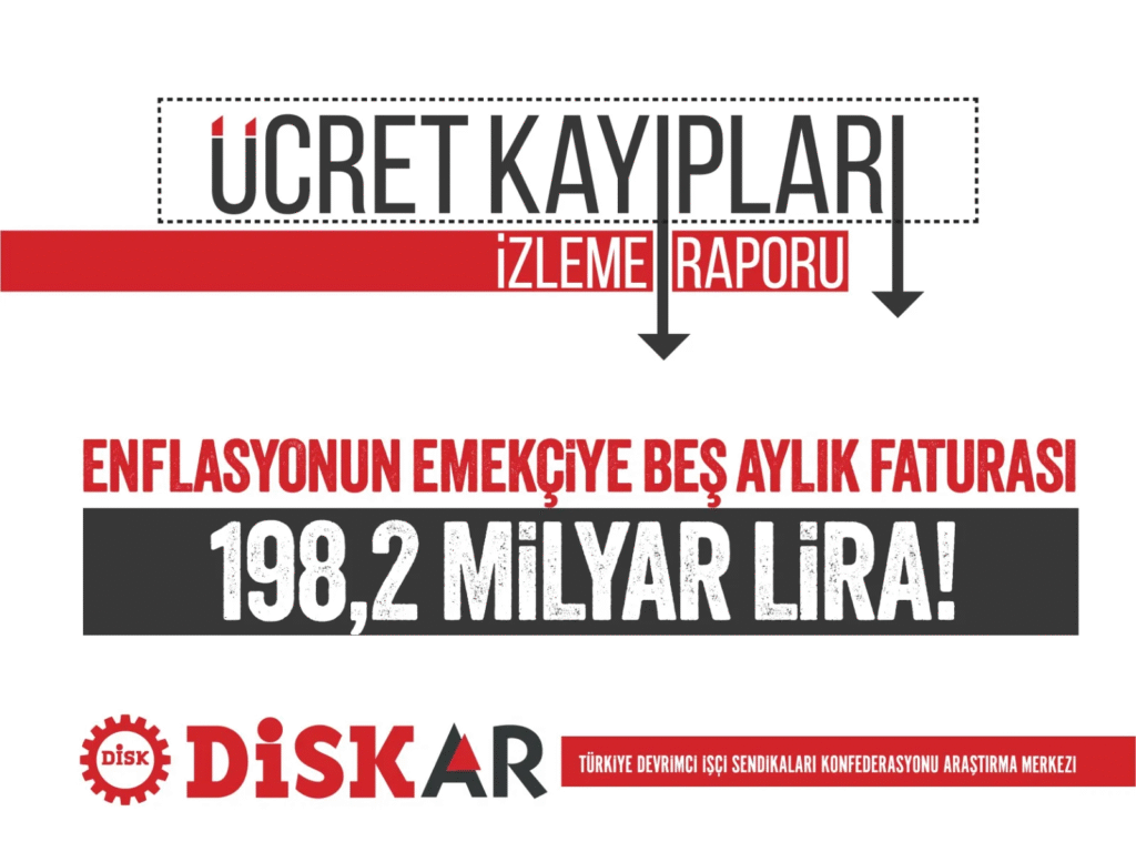 DİSK-AR tarafından aylık olarak hazırlanan Ücret Kayıpları İzleme Raporu 4 Haziran 2025’te yayımlandı. Rapor, emek gelirlerinde vergi ve kesintiler ile enflasyon yüzünden yaşanan kayıpları aylık olarak izlemeyi amaçlıyor. Raporda, işçiler, memurlar ve emeklilerin ücret, maaş ve aylıklarında enflasyon ve kesintiler nedeniyle yaşanan kayıpların boyutları ortaya konuyor.