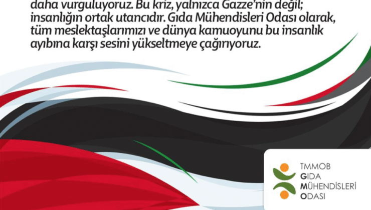 Açıklamanın sonunda, tüm dünya kamuoyu, uluslararası kurumlar, insan hakları örgütleri ve meslek kuruluşları bu insani felakete karşı seslerini yükseltmeye davet edildi. Gıda Mühendisleri Odası, “İnsanlık, açlığa seyirci kalamaz” diyerek, yaşanan trajedinin görmezden gelinmemesi gerektiğini vurguladı.