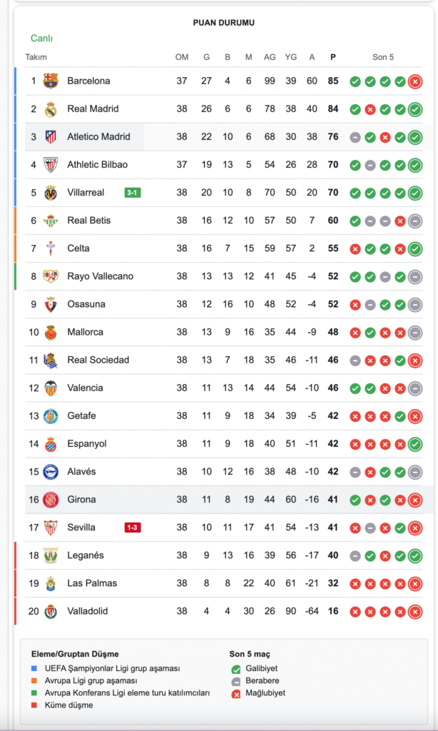 LaLiga EA Sports’ta sezonun son haftasında oynanan Girona – Atlético Madrid karşılaşmasının ilk yarısı 0-0’lık eşitlikle tamamlandı. Girona’daki mücadelede iki ekip de gol yollarında etkili olamadı ve pozisyon açısından kısır bir ilk yarı izlendi.