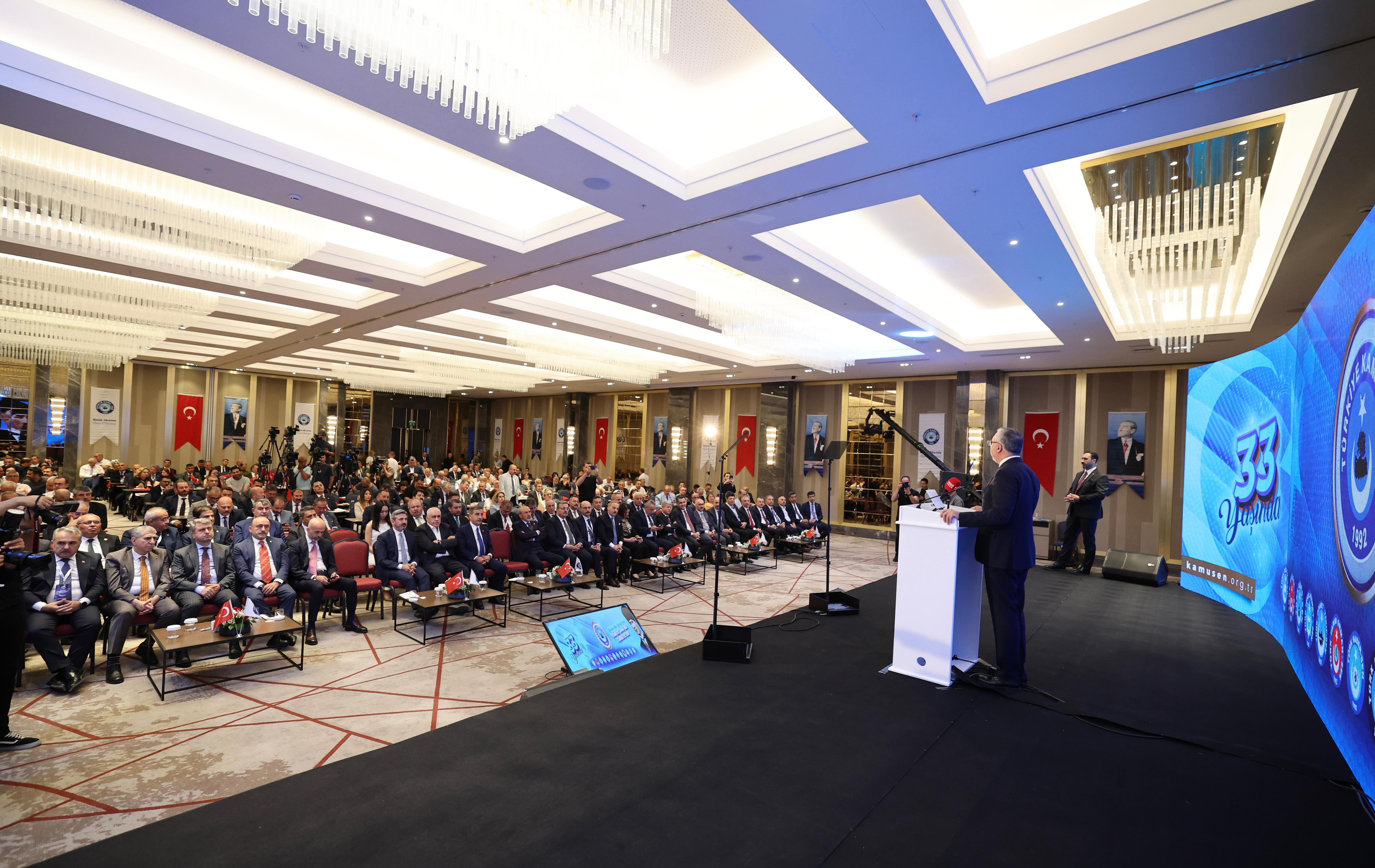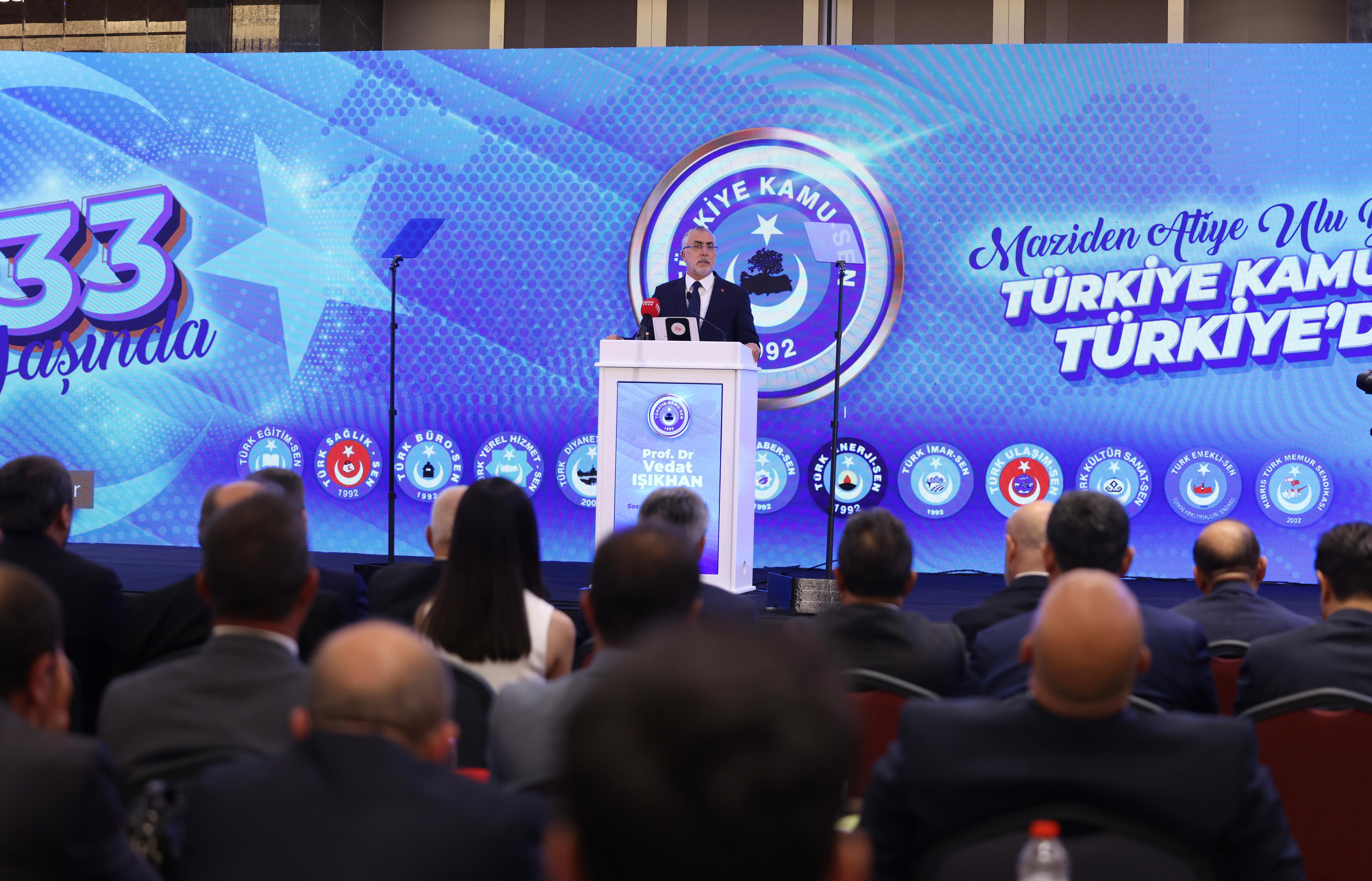 Işıkhan 392 Liradan 43 Bin Liraya En Düşük Memur Maaşında Büyük Artış, Çalışma ve Sosyal Güvenlik Bakanı Vedat Işıkhan, Türkiye Kamu Çalışanları Sendikaları Konfederasyonu’nun (Kamu-Sen) 33. kuruluş yıl dönümü programına katıldı.