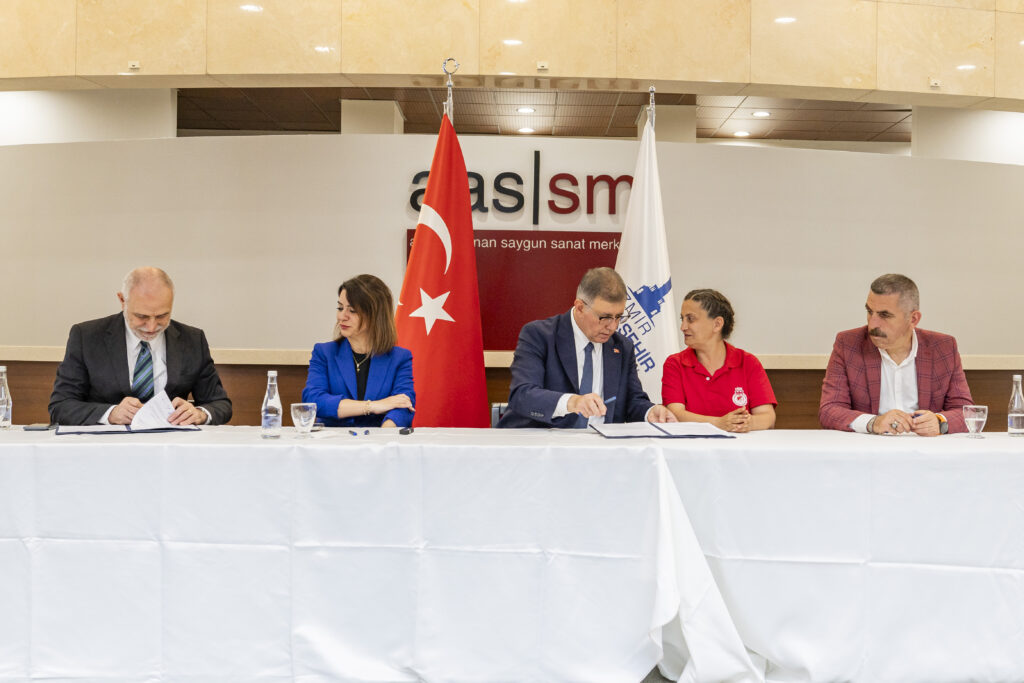 İzmir’de Toplu Sözleşme Tamam: Tugay’dan “Birlik” Vurgusu, İzmir Büyükşehir Belediyesi ile DİSK Genel-İş Sendikası İzmir 1 ve 3 No’lu Şubeleri arasında uzun süredir devam eden toplu iş sözleşmesi görüşmeleri, karşılıklı uzlaşıyla sona erdi. Sözleşme, İzmir Büyükşehir Belediye Başkanı Dr. Cemil Tugay, CHP Genel Başkan Yardımcısı Gamze Taşcıer, DİSK Genel-İş 1 No’lu Şube Başkanı Engin Topal ve 3 No’lu Şube Başkanı Serap Yılmaz’ın katılımıyla Ahmed Adnan Saygun Sanat Merkezi’nde imzalandı.