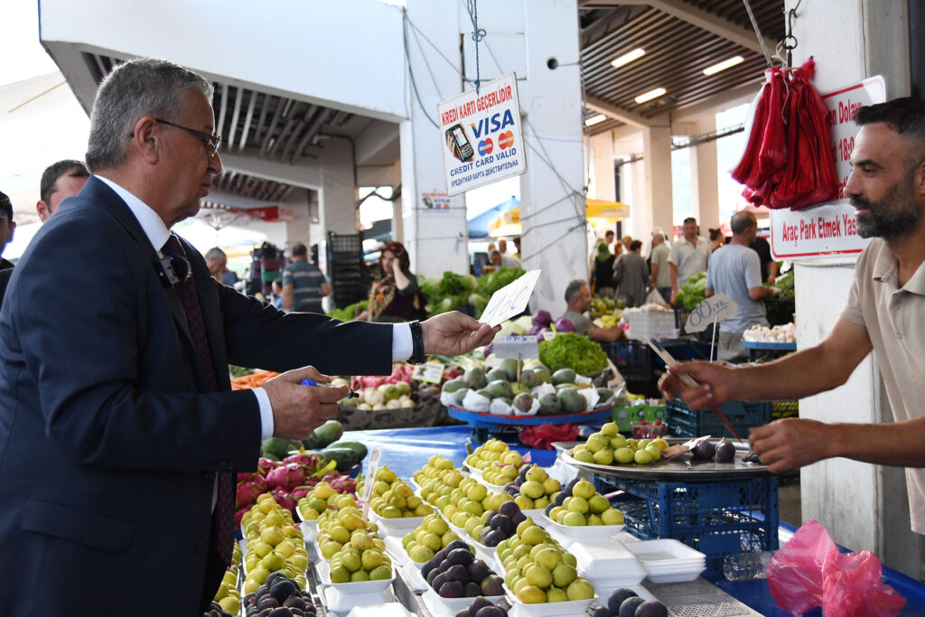 Kemer Belediye Başkanı Necati Topaloğlu, ilçenin merkezinde her pazartesi günü kurulan sebze ve meyve pazarını ziyaret ederek esnafa “hayırlı işler” temennisinde bulundu.