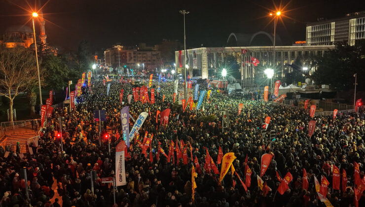 “Değerli İstanbullular, 19 Mart, devlet ve millet arasındaki sözleşmeyi yırtma girişimidir. 19 Mart, bu ülkeyi kim yöneteceğine millet karar vermesin diye yapılmıştır. Millet vergisini versin, askere gitsin, trafik cezası ödesin ama kendi iradesiyle iktidarı değiştiremezsin diye yapılmıştır. Bizim, sizin bir yıldır verdiğimiz mücadele bir mevzi olarak parti mücadelesi değildir. Bir cephe olarak demokrasi mücadelesidir. Bunun önemini, kıymetini kısaca şöyle hatırlatabiliriz. Biz demokratlar sandığın önemini biliyoruz. Geçtiğimiz haftalarda AK Parti İçişleri Bakanlığı bir düzenleme yaptı ve modifiye araçlara ceza kesen yeni bir uygulamaya geçti. Toplumdan beklenmedik bir tepki yükseldi. Ve bugüne kadar oyunu Cumhur İttifakı’na veren, AK Parti’ye veren, belki bizim bu mücadelelerimizi denk geldiğinde ‘Ne yapıyor bunlar?’ diyenler sosyal medyadan AK Parti’ye karşı ‘Sandıkta görüşürüz’ yazmaya başladılar. İşte 19 Mart milletin, ‘Sandıkta görüşürüz’ deme iradesine karşı, yani ister AK Parti’ye oy veren, sanayi sitesinde çalışan, bütün hayali aracını birazcık daha kendi hoşuna giden şekle sokmaya çalışan, aracının iki katı cezayı görünce sandıkta hesaplaşma isteyen olsun, ister İstanbul Üniversitesi’nin önünde toplanan, geleceğine sahip çıkan gençler olsun. Milletin egemen olduğu, milletin tek söz sahibi olduğu, tek adamların değil seçilmişlerin yönettiği, milletin istediğini başa getirdiği istemediğini gönderdiği bir düzen; bu ülkeyi var eden, kurtaran, kuran, bugünlere taşıyan düzendir. Bunun için sandığı ortadan kaldırmak isteyenlere, bir avuç darbeci kendisine göre bir düzen kurarsa bir daha kimsenin yüzüne bakmak istemeyen bu düzenbazlara karşı bu mücadeleyi, siyaseti ve sandığı koruma mücadelesini toplumsallaştırıyoruz. İşte sanayi sitelerine yayılan, işte köylerde tarlalarda konuşulan, işte işçi servislerinde gündeme gelen ‘Kardeşim hakkımı yiyorlar, hakkımı alırım. Almazsam karşı çıkarım. İstemediğimi değiştiririm’ diyen bu anlayış, bu darbeyi püskürtmek için en önemli güvencemizdir. Bu meydan sadece kendinden değil, bu mücadeleyi büyütmekten de mesuldür. Bu mücadeleyi büyütmeye, adım adım büyütmeye hep birlikte iktidara yürümeye hazır mıyız? Hazır mıyız?”