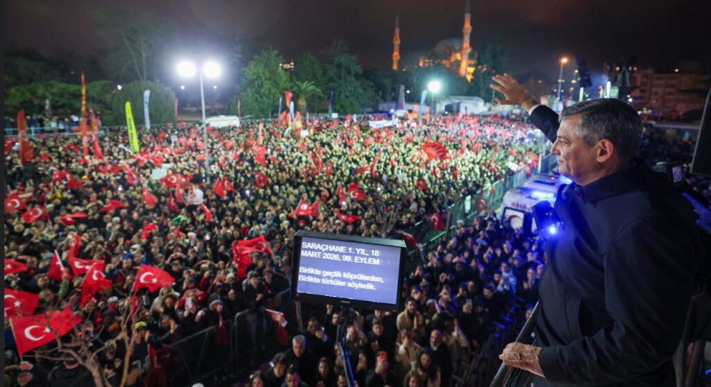 Cumhuriyet Halk Partisi Genel Başkanı Özgür Özel, İstanbul Saraçhane’de, 19 Mart darbesinin birinci yıldönümünde düzenlenen Millet İradesine Sahip Çıkıyor Mitingine katıldı. Bu yolda bize, size ömür biçenler oldu. ‘Dayanamazlar’ dediler. ‘Dağılırlar’ dediler. ‘Vazgeçerler, teslim olurlar’ dediler. Teslim olmayanlar burada. ‘Bin kez budadılar körpe dallarımızı, bin kez kırdılar. Yine çiçekteyiz işte, yine meyvedeyiz. Bin kez korkuya boğdular zamanı. Bin kez ölümlediler. Yine doğumdayız işte, yine sevinçteyiz. Bitmedi daha sürüyor o kavga ve sürecek. Yeryüzü aşkın yüzü oluncaya dek.’ Değerli İstanbullular, bugün her şeyin başladığı yerde, milletin evinde, Saraçhane’deyiz. Korkanların sığınağında değil, cesurların meydanındayız. Tam 365 sabah oldu, tam 365 akşam. 365 kez doğdu güneş, 365 kez battı. ‘Bir Ekrem’i aldık, işi bitirdik, onları sindirdik’ sanıyorlardı. İşte bir yıl sonra bir Ekrem’in yerine yüz binlerce Ekrem meydanda. Bir yıl önce bir iftar vaktiydi. Ekrem Başkan’ın 31 yıllık diplomasını iptal ettiler. Hem de diplomayı veren fakülte direndiği halde, dekan ‘Olmaz’ dediği halde, her sorulduğunda ‘Diploma geçerli’ dedikleri halde zorlayarak, bastırarak, dekanı istifa ettirerek, en nihayetinde İşletme Fakültesi’nden değil İstanbul Üniversitesi’nin yönetim kurulundan, yani işi diploma vermek, denklik vermek değil boya yapmak, ring seferlerini düzene koymak olan üniversite yönetim kurulundan diploma iptaline gittiler. İşte o gün artık hiç kimsenin, hiçbirimizin, hiç birinizin elindeki devletin verdiği hiçbir kağıdın bir önemi, bir kıymeti kalmadı. Ne tapu tapuydu artık, ne evlendirme cüzdanının bir anlamı vardı. Bankada parası olan da güvenemezdi, hisse senedi alan da. İşte o gün birileri bu devletin, bu devleti devlet yapan toplum sözleşmesinin, anayasanın altına dinamiti koydu. O gün devlete olan güveni boşa çıkarıp, milleti birilerinin elinde oyuncak etmeye çalıştılar. Hemen ardından sahur vaktinde kapısına yüzlerce polisle birlikte dayandılar. Yalanlarla, iftiralarla dolu bir kumpası başlattılar.”