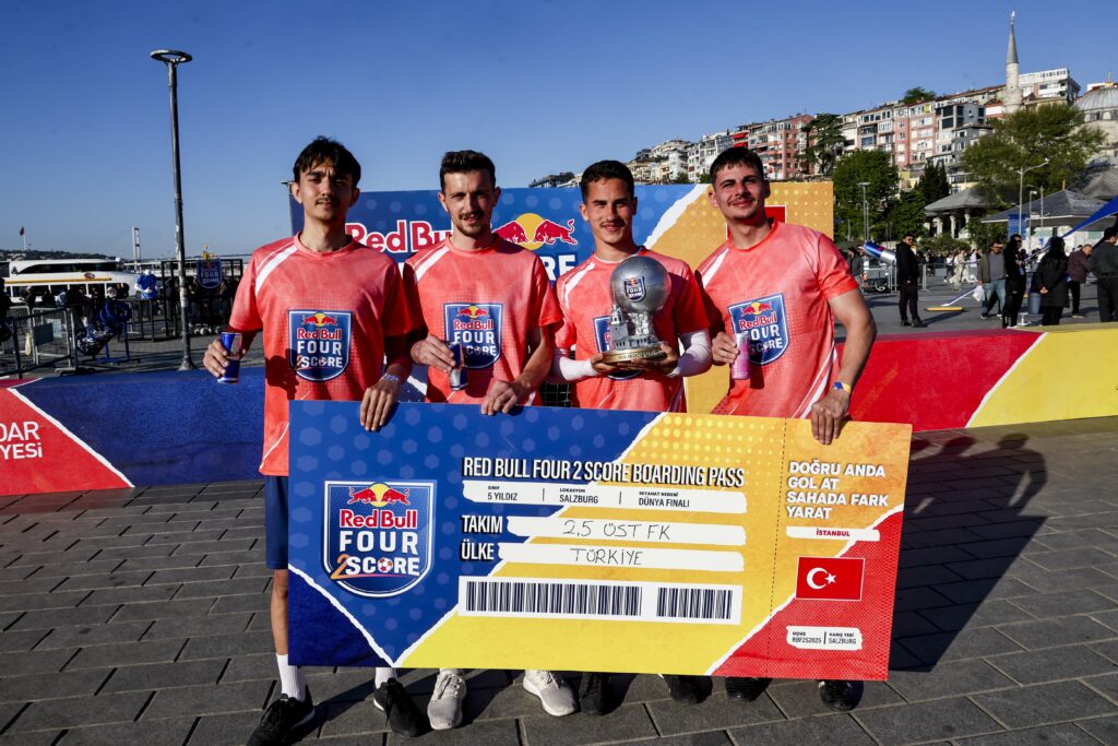 Red Bull Four 2 Score’da Ülkemizi Dünya Finali’nde Temsil Edecek Takım Belli Oldu Red Bull’un global futbol etkinliği Red Bull Four 2 Score’da Türkiye Finali heyecanı sona erdi. Trabzon, Konya, Sivas ve İstanbul elemelerinin ardından 11 Mayıs Pazar günü Üsküdar Meydanı’nda oynanan final karşılaşmalarının kazananı Trabzon etabında da şampiyonluk yaşayan 2.5 Üst FK oldu.