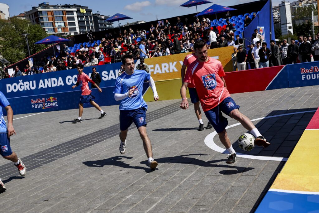 Migros’un partnerliğinde düzenlenen Red Bull Four 2 Score benzersiz kurallarıyla futbola eğlence katıyor. Takımların dört ana bir yedek oyuncudan oluştuğu turnuvada maçlar 15×25 metre ölçülerdeki sahada oynanıyor. 10 dakika süren ve kaleci olmayan maçlarda ilk ve son dakikada atılan goller 2 sayı yerine geçiyor. Devre arası ve mola verilmeyen Red Bull Four 2 Score’da heyecan ve oyun hızı en üst seviyede gerçekleşiyor. Kaleci olmadığı için de oyuncular gol atmak için daha fazla fırsat yakalıyor.