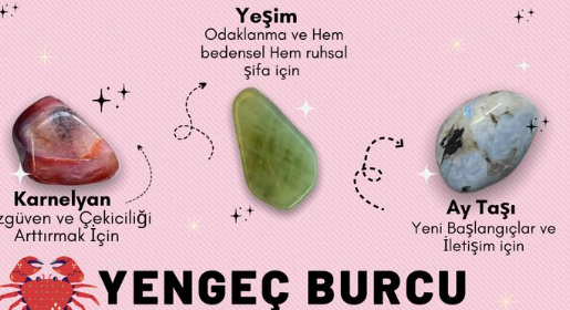 Evine, ailesine ve sevdiklerine düşkünlüğüyle bilinen Yengeçlerin uğurlu taşı ise, tıpkı kendileri gibi Ay’ın enerjisiyle doğrudan bağlantılı olan Ay Taşı‘dır. Bu özel taşın, Yengeç burcu üzerinde derin etkileri olduğuna inanılır.