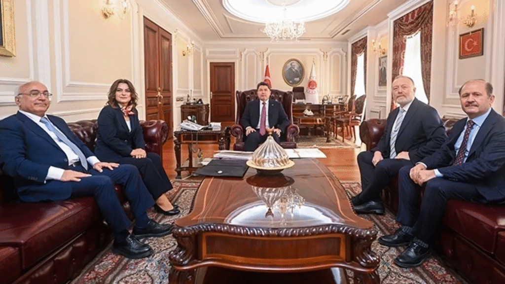 Bakan Tunç, sosyal medya hesabından yaptığı paylaşımda, TBMM Başkanvekili ve DEM Parti Van Milletvekili Pervin Buldan ve DEM Parti Şanlıurfa Milletvekili Mithat Sancar ile bakanlıkta bir araya geldiklerini bildirdi.
